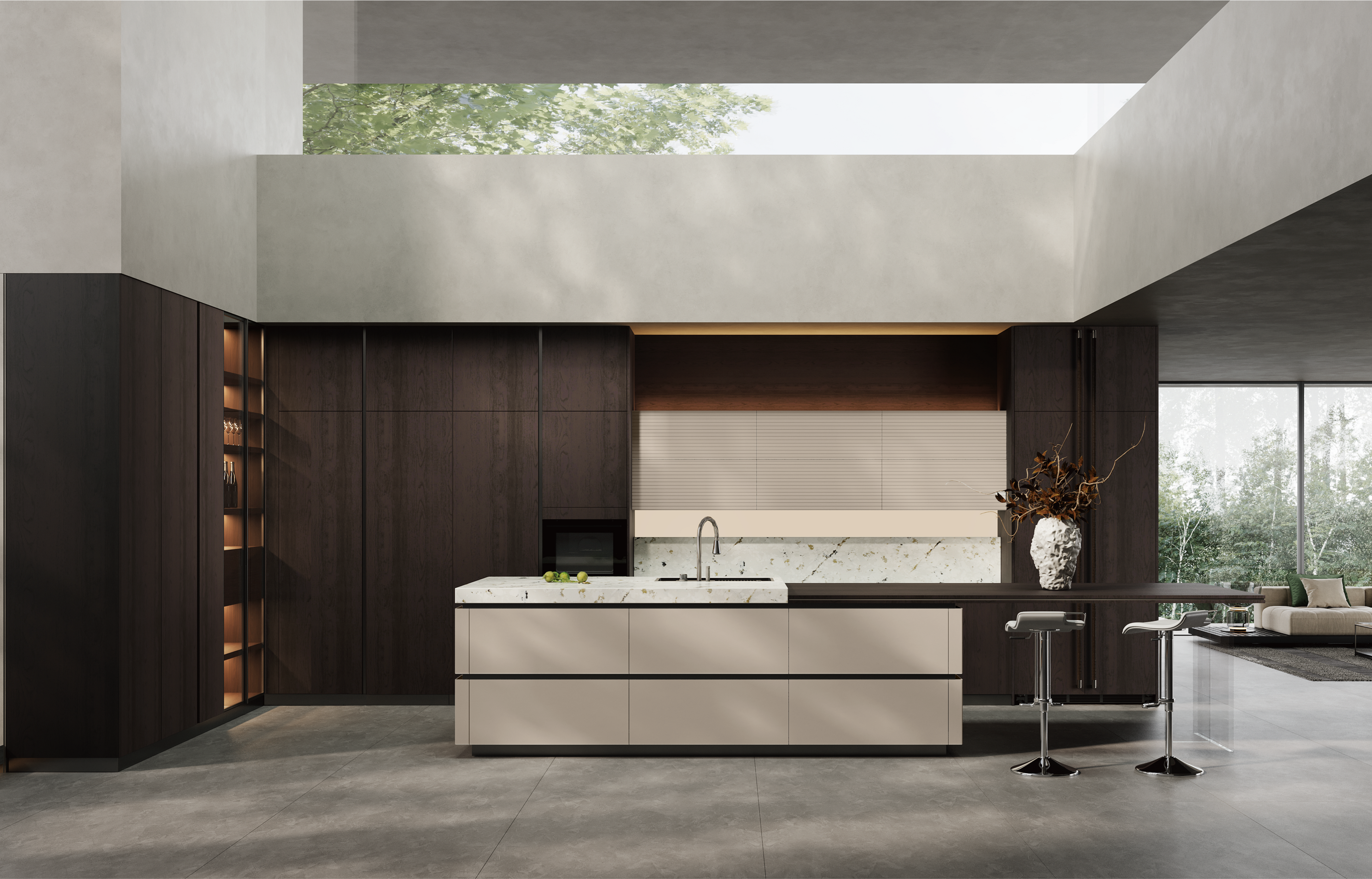 通过713贵宾会厨柜量体裁柜,定制出适合主厨下厨的烹饪区和洗涤区的舒适高度。